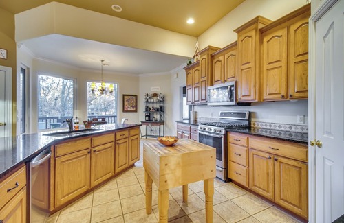 Delight in the bliss of waterfront living at this home on Grand Lake O' the Cherokees! This 6-bedroom, 4-bath Grove vacation rental boasts ample indoor and outdoor living space, making it easy to enjoy nature and relax with your loved ones. Spend your days kayaking, paddleboarding, catching bass, or visiting attractions like Lendonwood Gardens. Later, cook dinner on the grill and unwind on the deck!