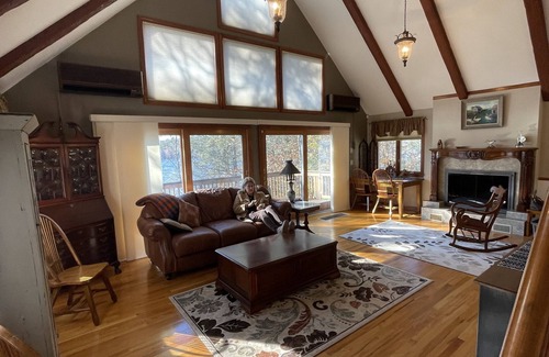 Beautiful, quiet, spring-fed private community lake for paddling, swimming, fishing. , sandy beaches, miles of well-maintained trails to walk and bike. Soaring light-filled living room opens to large deck overlooking the private dock and lake with gorgeous sunset views. Kayaks and paddleboat provided (no motor boats)