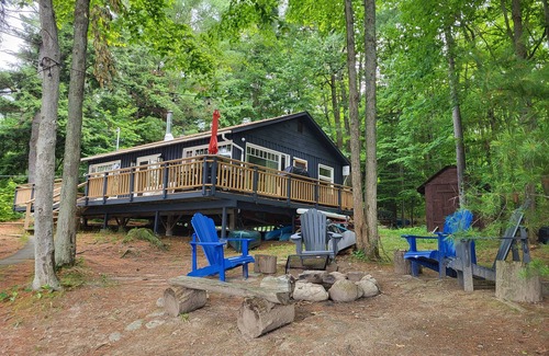 Enjoy privacy, all day sun and beautiful sunsets while lounging on the dock or large deck. Our property features 2 docks, a renovated 3 bedroom bright and cozy cottage, outdoor fire pit, indoor wood stove, a 4 person canoe and two kayaks, standup paddle board, 2 acres of land to explore, and a waterfront space with shallow, sandy water.