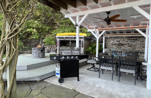 Step outside onto the covered patio with overgrown pergola, including dining area, BBQ grill, gas fire pit, and ample seating. Venture around the corner and onto the dock, with a large picnic table with seating for 12. Our favorite spot: happy hour and dinner on the dock as the sun sets.