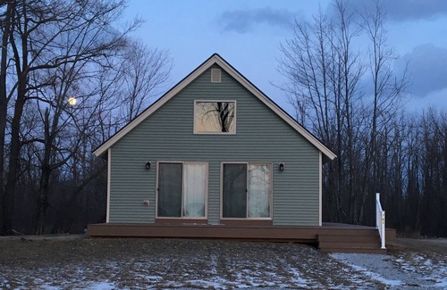 Beautiful, 2 Bedroom House on the Lake. This cottage offers 2 bedrooms downstairs and a loft upstairs. This property is available from May-October every year, we rent for the week usually, but negotiable. Downstairs there is 1 queen size bed in one bedroom and 1 full size and 1 twin bed in the other bedroom. Upstairs, in the loft is 2 twin beds and a futon. Enjoy all the benefits of being home, but none of the work. The cottage will be clean when you arrive and we do the cleaning after you leave. There is Air Conditioning in the cottage. It has a Lake Well, so water can be used for everything, but drinking. Drinking Water is supplied. This rental comes with all Bedding Linens, Towels, Pots/Pans, Kitchen Utensils, Plates, Keurig K-Cup Coffee Machine, etc. Satellite Dish TV and WiFi/Internet is provided. There are also some games in the closet. There is a private dock on this property, and a fire ring by the lake with some chairs. There are 2 kayaks for your use, an outdoor table to enjoy the sunrise or sunset on the deck, a barbecue grill to enjoy your days/nights outdoors. This beautifully located house is newly renovated and tastefully decorated as a lake home. Many personal touches to make it a home away from home. Perfect for a family to make memories or just a romantic getaway. Can see Butlers Island and Woods Island right from shore. Boat Lunch within 1/2 mile from this rental. Shopping and restaurants around 4 miles away. Ice Cream stand, park, and gas station nearby. Golf Course, Gym, Community Pool, and a Movie Theatre are also all only about 4 miles away. The exterior picture of this home that is shown was when it was still being worked on. Now it is finished and there is a lawn. We currently have snow, but when I am able to, I will post an updated exterior photo. We also supply trash removal. There is a container in the back, you put the garbage in the container and we will empty when it is full. This place is beautiful and a great place to make lasting memories. You will not regret renting it!