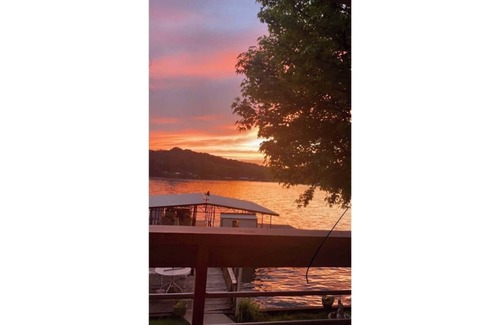 Enjoy fun lake days and fabulous sunsets at our beautiful three bedroom lakeside cottage. The covered dock has a large swim platform and wet steps. The west facing porch, which is regularly visited by hummingbirds, gives amazing views of the lake and breath taking sunsets.