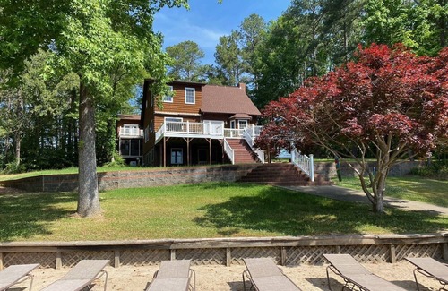 Lakeside Log Cabin - Sleeps 12, Boathouse, Sandy Beach, Lush Yard | House in Henrico, NC