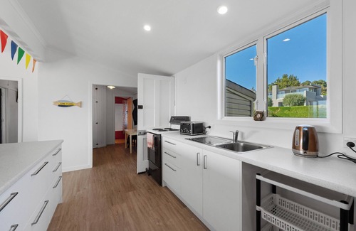 This well-sectioned, classic Kiwi villa is a spacious getaway ideal for families or couples seeking a delightful escape that is just a stone's throw away from the lake. Step onto the large deck area, where you can soak in the views while enjoying a glass of wine or savouring barbecues with your loved ones!