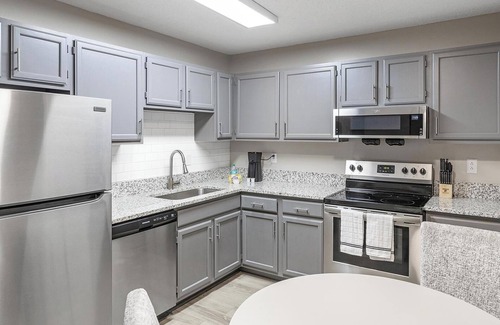 Dive into comfort and convenience at Reserve at Research Park, nestled in Huntsville’s vibrant University/Research Park neighborhood. Perfect for flexible or extended stays, our fully-furnished apartments feature full kitchens with granite countertops, stainless steel appliances, hardwood-style floors, and private patios or balconies. Enjoy a resort-style pool, 24-hour fitness center, tennis and pickleball courts, a pet spa, and a spacious bark park for your furry friends.