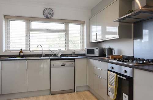 Discover this newly renovated near the beach gem with stunning sea views from the upstairs bedrooms and bathroom. This modern house features a conservatory and can accommodate up to 5 cars off-street. Just a 2-minute walk from the beach, it's perfect for water sports enthusiasts, and it's situated in a quiet cul-de-sac while being close to shops, funfair, pubs, and restaurants. Please respect our lovely neighbors by keeping noise levels reasonable. No parties or large groups allowed.