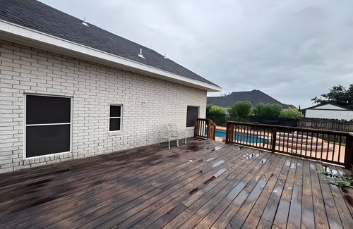 +Sparkling pool and backyard deck