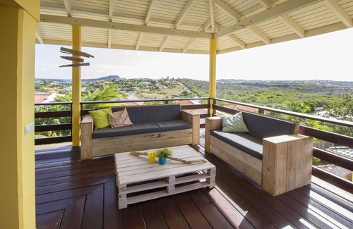 The villa is located on top of a hill in the Cas Grandi residential area, 15 minutes (by car) from Willemstad. The popular beaches Jan Thiel Beach, Zanzibar, Papagayo Beach and Mambo Beach are reachable within 5-10 minutes (by car).