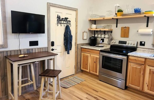 Another rental cabin is on this wooded lot and other guests may be present during your stay, but your outdoor picnic area and firepit are for you private use. Because the driveway and parking area is shared space, we ask you limit cars to two and share the charging outlet equally. Please be aware that the driveway is short, but steep to the road.