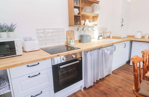Lavender Cottage, a single-storey cottage, consists of an open-plan living space with electric oven and hob, microwave, fridge, dishwasher, washing machine, coffee maker, air fryer, dining seating for four people, Smart TV, and woodburning stove. The bedroom is a king-size with TV. There is a shower room with walk-in shower, basin, and WC. You'll find a shop in 3.9 miles and a pub in 0.6 miles. WiFi, fuel, power, starter pack for woodburning stove, bed linen, and towels are included in the rent. Outside, there is an enclosed courtyard with a gravelled area, picnic bench, and designated off-road parking for one car. One well-behaved pet is welcome. Sorry, no smoking. Enjoy your trip to the property, Lavender Cottage. Note: Property on owner's smallholding with horse, alpacas, chickens. Note: Ramped access. Note: This property has a Good Housekeeping Bond of 150GBP