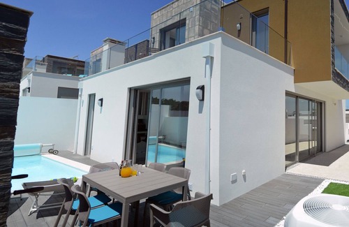 The property is spacious and divides itself throughout 2 floors. On the ground floor you will find a large and inviting open space area with lounge, a dining area that can easily sit 6 and a modern and totally equipped kitchen, with everything you might need to cater for your friends and family and enjoy delightful and entertaining moments during your stay. From all three areas you have views over the main patio where there is a dining area with a built-in barbecue next to the heated pool. The owner has kindly provided 6 beach towels and 2 sets of beach toys. For entertaining inside, you have satellite TV, DVD player, a free Wi-Fi connection and also a selection of books and board games.