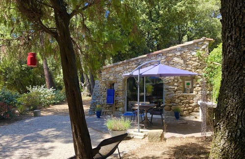 Maisonette completely independent and not overlooked stone in nature in the middle of the pines at the foot of the Sainte Victoire mountain. Only 7 km from Aix en Provence. Perfectly equipped, neat decoration. The departures of hikes of the Sainte Victoire massif at the end of the garden. Absolute calm. Living room with a double bed. Very good bedding. Kitchen area and a shower room with WC. A private terrace with deckchair, umbrella and table for lunch. Private garden at the back of the house. Unrestricted access to the pool of the property, stone basin Rognes. Pool shared with the owners. Sunbathing at your disposal by the pool. Plancha and barbecue. Tennis on reservation (loan of snowshoes for free) as well as electric mountain bike rental to visit the surroundings. Theme stay "yoga-detox" on request. For lovers of nature, sun and Dolce Vita Provençale. Long term rental possible. Customized price.