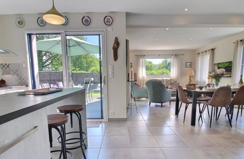 New holiday home on one level, located 10min walk from the Historic Port of Saint Goustan and not far from the town center and its shops. - It consists of a beautiful living room with dining area and lounge, a well-equipped open-plan kitchen with utility room. The living room opens directly onto the terrace and the garden. - Three spacious bedrooms (two double bedrooms each with a 140x190 bed, one bedroom with 2 bunk beds 100x190) a bathroom with walk-in shower. Independent toilets. - Outside, a wooden terrace welcomes you for your meals, you will have an enclosed lawned garden and a carport for a vehicle. Come and stay in Auray, and discover its historic port of St Goustan and its dynamic city center, its shops and its market! Here, in the heart of the Gulf of Morbihan, you will be a stone's throw from the great beaches of Carnac and its alignments of megaliths, you will discover Quiberon and its wild coast. 5 minutes away, you can take the expressway and criss-cross the key sites of Morbihan: Rhuys peninsula, Lorient, Vannes, or discover the interior with Rochefort-en-Terre or La Gacilly.