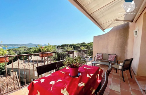 It comprises an entrance hall, a first bedroom with 2 single beds, cupboard and private shower room, separate toilet. First floor: living room with sitting area, dining area opening onto south-facing terrace with panoramic sea views over Saint-Tropez, fitted kitchen, 2 bedrooms with fitted wardrobes and en-suite shower room. Laundry room with washing machine and large fridge.