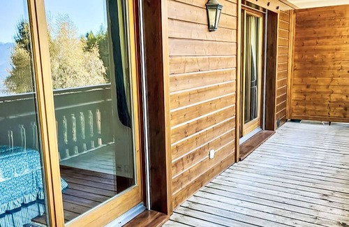 "Les Renardeaux 5", 2-room apartment 60 m2 on 2nd floor. Spacious and bright, very beautiful and tasteful furnishings: living/dining room with open-hearth fireplace and cable TV. Exit to the balcony. 1 room with 2 beds (90 cm, length 200 cm), bath/bidet/WC. Exit to the balcony. Open kitchen (oven, dishwasher, 4 ceramic glass hob hotplates, toaster, kettle, microwave, freezer, electric coffee machine, Capsules for coffee machine (Nespresso) extra). Sep. WC. Parquet floors. Large balcony 18 m2, south-west facing position. Balcony furniture. Marvellous view of the mountains and the valley. Facilities: hair dryer. Internet (WiFi, free). Garage. Please note: non-smokers only.