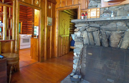 THE HOUSE: A rustic cabin with modern amenities. Guests will be welcomed by patches of day lilies and other wild flowers as they arrive. Enter through the galley kitchen, then into the living or dining room to see the view. Skylights in the kitchen and living room allow natural light to illuminate the cabin. Guests can also enjoy the water views while lounging or dining out on the screened porch, accessible from the living room. A decorative stone fireplace is the centerpiece of the living room with high ceilings. New shower in bathroom. The outdoor shower stall is located on the north side of the cabin. Enjoy the view as you cook on the charcoal grill! This is one of the few properties in our program to have both an indoor bathroom as well as an outdoor shower.