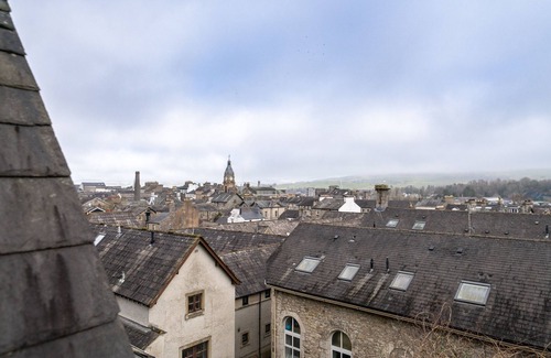 The property has an upside-down layout, and you enter into the kitchen/dining room. A good ergonomic design and plenty of storage ensures all cooks are well catered for. An unusual architectural feature here is the wide sloping skylight window, through which you have a great view over the rooftops of Kendal to the countryside beyond. Down a flight of stairs to the stylish lounge, which has both a main seating area with TV, and a raised 'mini-library' reading area complete with a rocking chair for you to relax with a good book. A small balcony is accessed via the lounge to give you more views over the town - ideal for a summer evening drink.