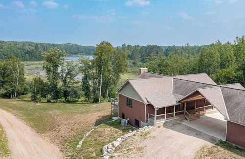 This Lodge in the deep woods is tucked down scenic country roads between two lakes. Watch the wildlife walk past from the comfort of the porch or deck; or snuggle up inside to take advantage of views of the lake and all manner of wildlife through the wide windows.