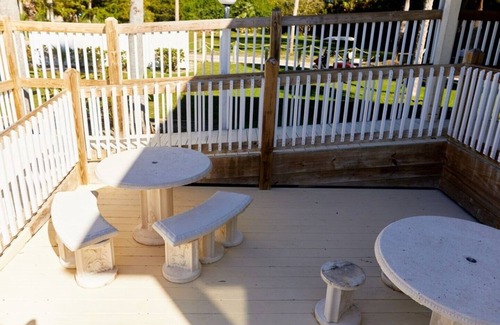 If you prefer to stay away from the salt and sand, access to the heated fresh water pool is directly across the path. Or continue to walk down the boardwalk over the dunes to a pristine 7-mile beach sure to quench your need for shelling, beach combing and surf fishing.