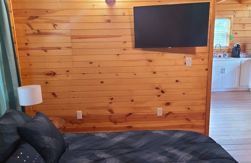 One of the earths truly unique places! Enjoy an experience with the ultra clear blue water of the quarry with fish, high rock cliffs, a raft, and a pedal boat. The cabin is a true log home built for guests to love. Relax on the covered porch with hot tub, rocking chairs, and amazing water views. Entertain yourselves with the arcade, satellite TV, WiFi, Rokus, and backyard games. Fire pit and park style grill are also in the backyard. Fire wood and coffee are provided. Pet friendly. Enjoy!