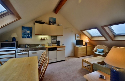 -- The Upper Penthouse Level offers 2 Bedrooms and a Full Bathroom and outstanding views to both Sugarloaf and Bigelow Mountains. One Bedroom with King, and another Bedroom with a Double and a separate Bunkbed (2 Twins). This upper level has an efficiency kitchen along with a small dining and living area.
