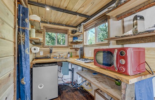 We think you'll love this cute tiny home! It's tucked out of the way in a dense forest, with sweeping forest and mountain views. You won't believe how peaceful it is! You're just a few miles up Hwy 67 to Cripple Creek with small shops, restaurants, and some of Colorado's only casinos! **While the road is plowed, during winter months we do recommend 4WD for the large snow amounts Colorado mountains get each year.