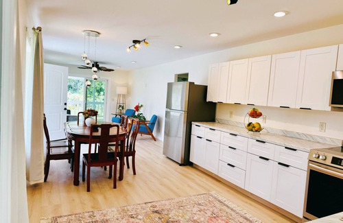 Experience East side of the island in this 2-bedroom house near Pahoa. The cozy atmosphere and comfortable furnishings make it a nice retreat for guests. The home is newly renovated with brand new appliances, ensuring a pleasant stay. You're sure to make fantastic memories with a stay at our place. Our home is very bright with lots of natural sun light. Each bedroom has an access to lanai where you can enjoy your morning coffee. Each bedroom has a comfortable king bed with high quality mattress and 100% cotton linen. A full size pull-out sofa in the living room sleeps additional two guests. The kitchen is equipped with brand new appliances: full size fridge, electric range, microwave, toaster, coffee maker, and other essentials for cooking. The bathroom is furnished with clean towels, soap, shampoo, conditioner and hair dryer. There are many attractions to explore close by including Kehena Black Sand Beach, Isaac Hale Beach Park, the historic Lava Tree State Monument, Fissure 8, Kilauea Caverns of Fire and more. With so many choices out there, we appreciate you choosing to stay with us and we look forward to helping make your stay as comfortable as possible.