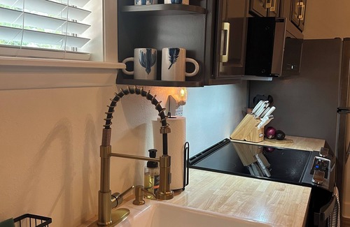 Discover the beauty of Grand Lake from this 2-bedroom + loft lakefront home nestled in a soothing and tranquil setting, this peaceful retreat offers a truly rejuvenating escape for guests. The bedrooms feature 2 queen beds, ensuring a comfortable night's sleep. The bathroom is well-appointed with a shower and a hair dryer. In addition, there are 3 additional spaces, including a living room with 1 full pull-out couch, 1 queen murphy bed in the air conditioned / heated sunroom overlooking a beautiful lake view, and 2 twin beds in the loft overlooking the living area and kitchen. All mattresses and pillows are new and we provide fresh linens to keep our guests comfortable and rested. This lakefront property is in coveted Woodard Hollow Cove providing deep water and in a no wake zone. This is the perfect setting for swim and play from its private dock while safe from speeding boats. A 15 ft Lily Pad is available for water leisure as well as 4 kayaks for paddling around the cove. An In-counter ice machine is perfect for filling up your cooler and provides 50 lbs of ice per day. After a long day on the lake, enjoy grilling on the Oklahoma Joe's grill overlooking the water. It has propane and charcoal grilling as well as smoking capabilities. There is also a Blackstone griddle with air fryer available as well. We have an outdoor shuffle board table to entertain while grilling or to just hang out and enjoy the view. The large outdoor table is available for dining on the deck or gather inside for dinner and games at our 8 person table with lake views. You can enjoy watching TV with the family on the Amazon Fire TV anytime during your stay. Our fiber internet provides the best internet for streaming or working remote ( even on the dock ). It's a short 4 minute boat ride to Shangri-La Resort offering 4 restaurants, golf, pickle ball, marina, and more. Launch your boat at nearby boat ramp only 7 minutes away. Come experience your best lake life at our exciting yet peaceful home we call “Woodard Hollow Hideaway.”