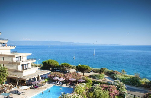 The residence "Les Calanques" is situated in a sunny position on a slope, approximately 100 meters from the sea, with a road to cross. It is located by a road, offering a car-free holiday rental experience, though a car is recommended. The complex is surrounded by natural beauty, with a sandy beach "Plage Marinella" just 2 km away, and a rocky beach merely 100 meters away (small).
