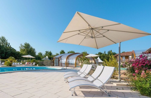 Immerse yourself in the natural beauty that surrounds the resort. The property features a fenced area with trees, providing a serene ambiance for your holiday rental. Bask in the sun by the two heated swimming pools (400 m2), available seasonally from May 1st to October 15th. Kids can splash around in the dedicated children's pool, and an outdoor shower is conveniently located on-site. Unwind in the hot tub or engage in recreational activities like table tennis and boccia.