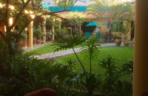 Spacious one-bedroom, one-bath casita in a traditionally decorated hacienda. The large bedroom has a comfortable king-sized bed, sitting couch and ample closet space, while the open living room is furnished with sofas, coffee table, armchairs, original artwork, TV and bookcase. The kitchen is fully equipped with a dining area that seats four; the bathroom, two sinks and a colorful oversized tiled tub with shower. The furnished patio is accessed from both the living room and bedroom. Your casita adjoins a beautiful garden of orchids, ferns, cacti, avocado, lime trees and fountain. A staircase adjacent to the kitchen leads to a rooftop sitting area with stunning views of Lake Chapala and the mountains perfect for enjoying a margarita, warm breezes and sunsets.