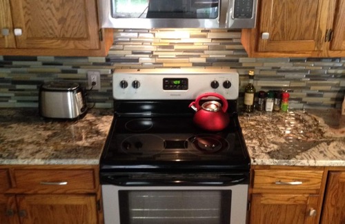 The kitchen is fully equipped with stainless steel appliances, microwave, toaster, coffee press and grinder, wine opener, cabinets complete with plates, wine glasses, cutlery, butcher block, basic cooking supplies - oil, seasonings, sugar , teas, coffee etc - outdoor BBQ and more.