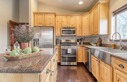 Three different decks look toward the waters of Jordanelle Reservoir and are the perfect place to enjoy a morning coffee before heading off to explore trails, slopes, and other outdoor activities. No matter what season you visit, Lucky Bill is ready with all the amenities you need to stay comfortable and entertained, including a cozy design, theater room, and rec room with a shuffleboard and pool table. Stock up the kitchen for at-home meals, or head to town for even more entertainment, dining, and shopping.