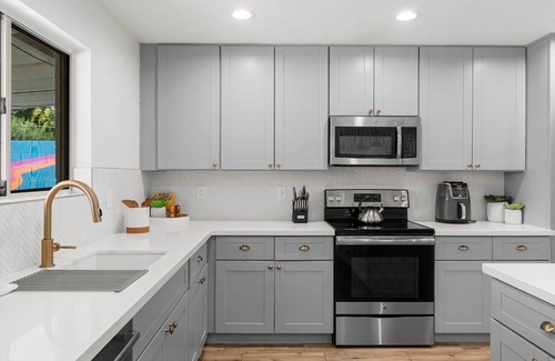 - Well-equipped kitchen with air fryer, hot water kettle, microwave, dishwasher, outdoor dinnerware, spices, cookware and so much more!