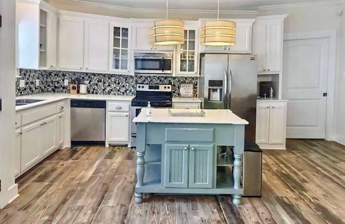 This modern place to stay is perfect for group trips, business trips, and family vacations. This home has three bedrooms and 2 bathrooms. It features elegant quartz counters in the kitchen and bathrooms. Wait to see the luxurious wood floors that are in all the main living areas. This Gonzales Louisiana residence is found in a peaceful community centrally located near New Orleans which is a quick drive away and Baton Rouge not far from LSU and Southern University.