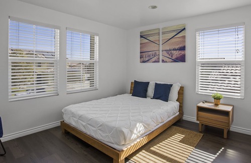 Located within a quiet neighborhood with easy access to the I-15 is this modern, contemporary home packed with fun amenities and luxury features. Inside you’ll find bright, open plan living with a fully equipped kitchen, 4 generous bedrooms a loft with an arcade game & workspace and a HUGE yard with a basketball court, a mini golf green, a giant connect 4 and a luxe fire pit. Stay just steps from the park with a picnic area or drive into the heart of Victorville just 10 minutes from your door.
