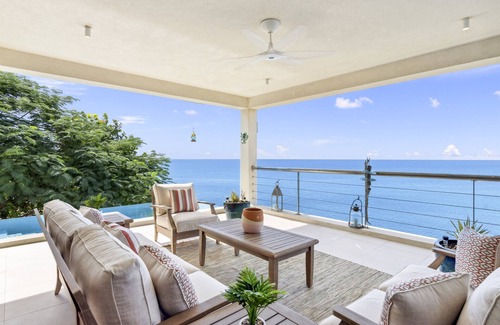 Oceans Edge features four thoughtfully designed bedrooms, three of which have their own private en-suite bathroom to ensure comfort and privacy for all guests. Featuring a spacious terrace on all three levels, the main level terrace includes a private pool that overlooks the turquoise Caribbean Sea, making it perfect for morning swims or relaxing while watching the sunset. The villa also includes a modern, fully-equipped kitchen, open living areas, and high-quality finishes that create a welcoming and comfortable atmosphere. Whether you're enjoying the ocean views, lounging by the pool, or preparing meals in the gourmet kitchen, every moment at Oceans Edge is special.