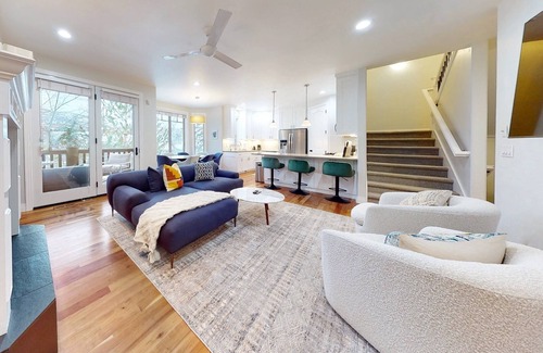 This three-story home with high-end interior and multiple living rooms is perfect for big families and groups (sleeps 10 people comfortably).