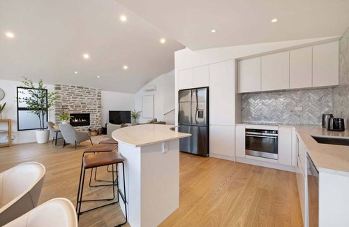 Perched in a peaceful Queenstown neighbourhood, Sumview seamlessly blends modern elegance with natural splendour. Overlooking stunning lake and mountain vistas, this exquisitely renovated retreat features a brand-new gourmet kitchen, open-plan living, and grand two-storey windows framing breathtaking views. A cosy fireplace and air conditioning ensure year-round comfort for an unforgettable stay.
