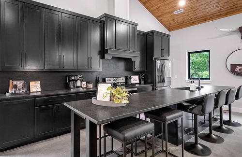 The beautifully decorated two-story home in Rogers is the ideal getaway for larger groups of friends and family seeking a relaxing escape in a secluded yet conveniently located modern cabin.