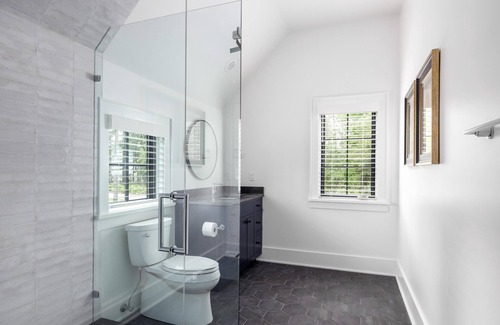 • Luxurious full bathroom with walk-in shower and spa-like finishes