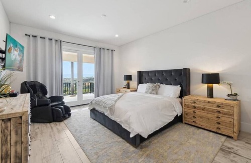 *Master Bedroom #1 : California King Sized top of the line bed + bedding, private living room with fridge + microwave, private patio with 180 degree views, massage chair, blackout curtains, attached bath.