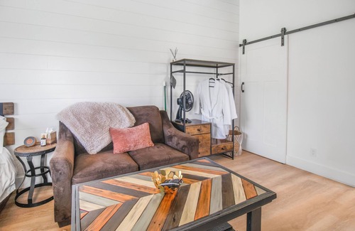 This newly built, fully furnished luxury apartment is part of a modern barndominium. Nestled on a peaceful seven-acre campsite, you'll have the chance to enjoy local wildlife and nearby farm animals, offering a perfect blend of comfort and nature.