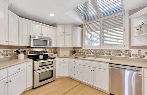 Prepare delicious feasts in the large kitchen, fully equipped with brand-new stainless steel appliances, plenty of counter space, and natural light. An elegant banquet dining area and cozy breakfast nook provide plenty of room to enjoy home-cooked meals together.