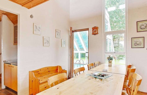 Layout: Kitchen(cooker(electric), hood, coffee machine, microwave, dishwasher, fridge-freezer, tumble dryer, washing machine), Living/bed room(double folding bed, TV(satellite, german television channels, danish TV channels (DR1 and TV2)), chromecast), bedroom(double bed), bedroom(2x single bed), bathroom(floor heating)(bathtub or shower, washbasin, toilet), bathroom(washbasin, toilet), Bubble bath(indoor), terrace, BBQ, swimming pool(indoor), solar energy