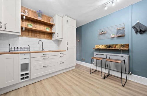 Welcome to our stylish and modern Belper retreat in the heart of the Peak District! Sleeping 7 guests across 3 cosy bedrooms, this charming home features a fully equipped kitchen, dining room, and a sleek bathroom. Step outside to a private garden where a gentle stream flows, creating a peaceful escape. Perfect for families, friends, and pets alike—your four-legged friends are welcome too. A perfect base for exploring the scenic beauty of Derbyshire!