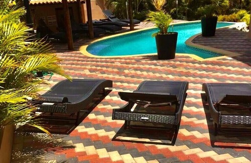 The apartment consists of a bedroom with air conditioning, fan, bathroom with toilet and an open kitchen overlooking the tropical garden and pool. There's a barbecue on your own terrace (PALAPA). Of course, the apartment has a separate entrance and Park right outside the door.
