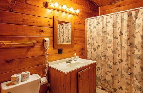 A Charming Lakefront log cabin with a large stone fireplace, Northwoods style log furniture, flat screen television and a large complete kitchen and full bath. The master bedroom features a queen bed while the other bedroom includes a full bed and a twin bed. For extra sleeping a full futon is provided in the living room. Adirondack chairs, a picnic table, charcoal grill, campfire ring and a private boat dock are provided for your outdoor use.