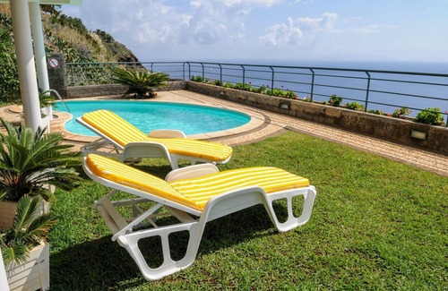 Nestled atop a soaring cliff 142 meters above the Garajau Natural Sea Reserve, Madeira Bello offers an unparalleled retreat in the heart of nature. This spacious villa boasts an uninterrupted 180º view, stretching across the vast expanse of the Atlantic Ocean, with the rugged Desertas Islands to the east and the renowned Statue of Christ in Garajau to the west. The villa's prime location provides a rare opportunity to witness the beauty of indigenous birds, rare fish, and even Mediterranean monk seals in their natural habitat.