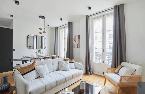 My apartment has 2 bedrooms with a large modern and elegant living room, completely renovated and air-conditioned (portable air conditioning), it is located in the center of Paris in the 3rd arrondissement. Halfway between rue Montorgueil, Place des Victoires, the Marais district and the Beaubourg center, you are surrounded by trendy cafes and restaurants. This apartment is ideal for a typically Parisian stay with family or friends.